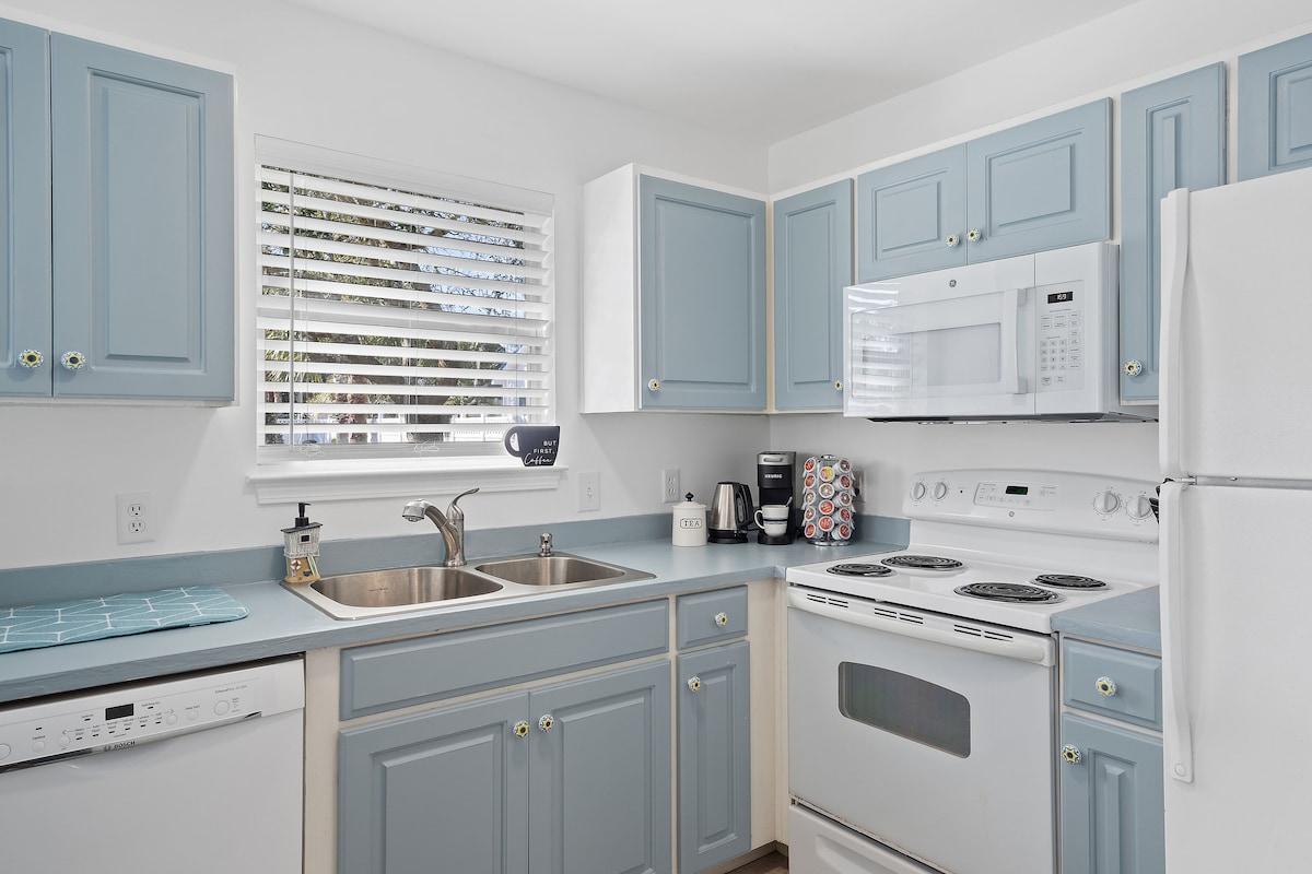 ☀ Full kitchen; modern appliances + well-stocked coffee bar
